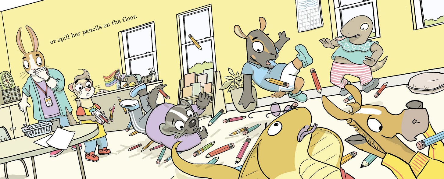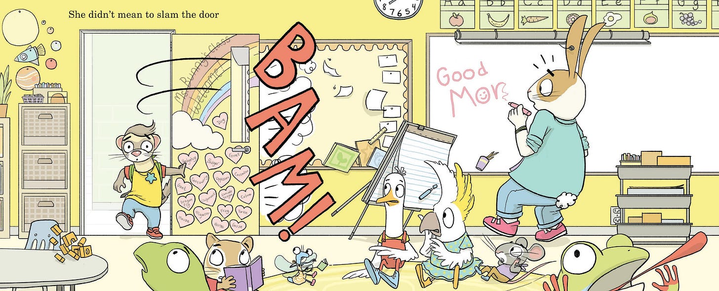 Laugh-out-loud moments (especially Ms. Rabbit’s hilarious reaction to her own embarrassment) will help this story address not only the common feeling of anxiety, but also engender a conversation amongst classmates and friends about the odd consequences of being alive.”—School Library Journal