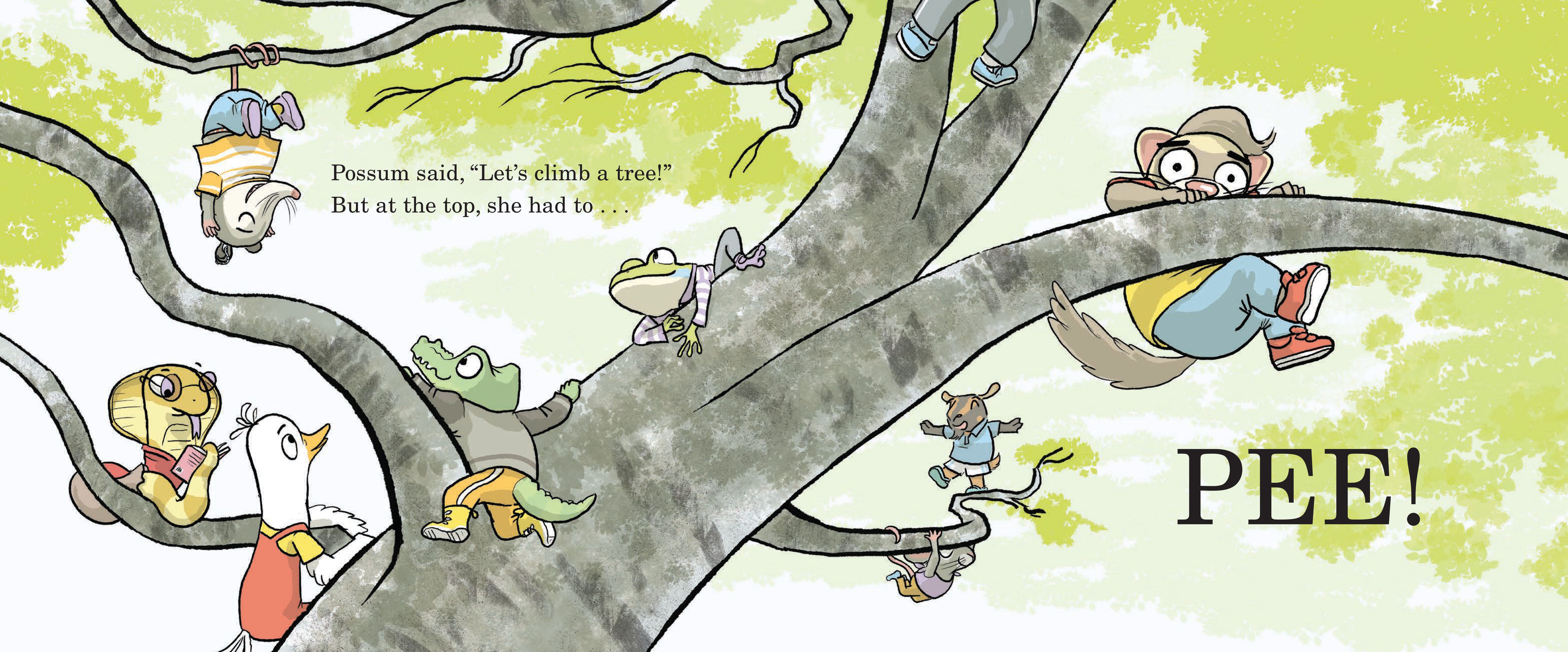 Look, there’s part of me that feels bad about it. A very, very small part. But that’s also the part that follows these poor creatures off the cliff too, because I am also all these frogs and that poor bird and this ferret going Through It on the page*.