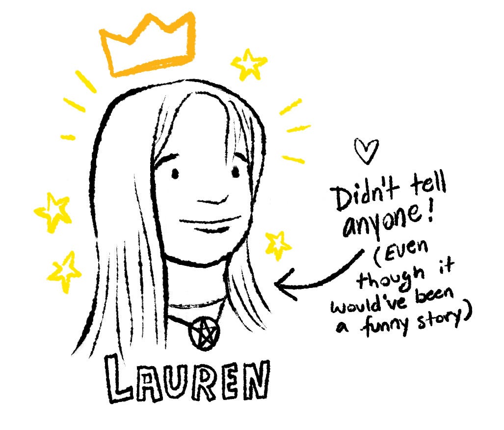 Shout out to Lauren H, who I accidentally mooned in 7th grade, and even though it was middle school gold, kept it to herself. What a legend.